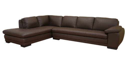 Diana Sofa/Chaise Sectional by Wholesale Interiors Two piece set is upholstered in dark brown leather with leather match. Features kiln dried hardwood frame, high-density foam, and rubber webbing support system. You will appreciate the attention to detail in this set. The design offers tight-fitting cushions to ensure a clean, high-class look and feel. The cushions provide firm support and abundant seating space. Top-grain leather is used throughout the seating area and armrests, and color and texture-matched leather match is upholstered on the backside and sides. Features: Top Grain Leather Kiln Dried Hardwood Frame High-Density Foam Rubber Webbing Support System Available in Dark Brown Ships by Freight Dimensions: Overall Size - 123"" W x 87"" D x 31"" H Sofa - 85"" W x 36"" D x 31"" H Chaise - 87"" W x 39"" D x 31"" H Seat Height - 16"" H Weight: 400 Lbs