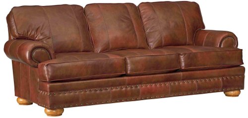 Information about this collection: Brockton Leather Living Room Suite group is built with an interlocking frame that is more durable than if the flat edges were nail-gunned together. The frames use 20 percent more wood than other manufactures to ensure that the product is built to last. 100% all over Leather Upholstery High Resiliency foam in seat and back cushions Interlocking Frame Multiple Channels for stuffing fiber so that it stays evenly distributed throughout the piece Welted attached pillow backs and box-faced cushions ensure comfort document.write(new_number); Brockton Sofa with Nailhead Trim Features Seat Dimensions: 68w-21d-19h Arm Height: 25" Sinuous Spring Support Ultralux Plus Cushioning Free Delivery applies to orders over 9