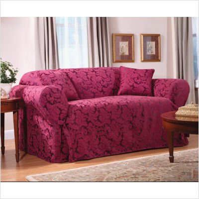 173926246 Burgundy Fabric: Champagne Pictured in Burgundy Make an elegant statement throughout your home with Scroll. A graceful leaf pattern blooms from a deeper tone background with a subtle sheen. The rich color choices add depth and drama to any room. It features wide ties and a sumptuously draping skirt that make it the picture of refinement. Features: -Classic Scroll design in burgundy. -60pct Cotton, 40pct Polyester. -Features wide ties and straight draping skirt. -Fits sofas 74'' - 96'' (Outside Arm to Outside Arm). Will This Slipcover Fit My Furniture? Easy Fit Demo Videos -Classic Slipcover Fit Tips-Stretch Fit Tips -Recliner Fit Tips -Semi Custom Separate Seat Fit Tips -Semi Custom Solo Seat Fit Tips -Tailored Wrap Fit Tips -Wing Chair Fit Tips Make an elegant statement throughout your home with Scroll. A graceful leaf pattern blooms from a deeper tone background with a subtle sheen. The rich color choices add depth and drama to any room. It features wide ties and a sumptuously draping skirt that make it the picture of refinement. Features: -Classic Scroll design in burgundy. -60pct Cotton, 40pct Polyester. -Features wide ties and straight draping skirt. -Fits sofas 74'' - 96'' (Outside Arm to Outside Arm). Will This Slipcover Fit My Furniture? Easy Fit Demo Videos -Classic Slipcover Fit Tips-Stretch Fit Tips -Recliner Fit Tips -Semi Custom Separate Seat Fit Tips -Semi Custom Solo Seat Fit Tips -Tailored Wrap Fit Tips -Wing Chair Fit Tips Make an elegant statement throughout your home with Scroll. A graceful leaf pattern blooms from a deeper tone background with a subtle sheen. The rich color choices add depth and drama to any room. It features wide ties and a sumptuously draping skirt that make it the picture of refinement. Features: -Classic Scroll design in burgundy. -60pct Cotton, 40pct Polyester. -Features wide ties and straight draping skirt. -Fits sofas 74'' - 96'' (Outside Arm to Outside Arm). Will This Slipcover Fit My Furniture? Easy Fit Demo Vi